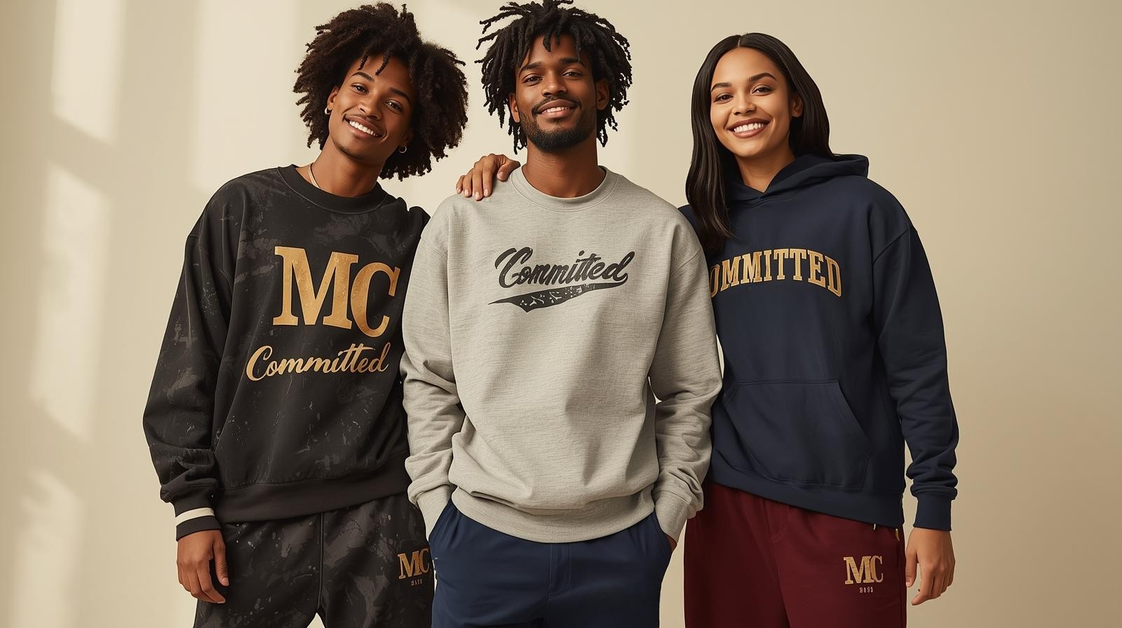 Your vision. Your merch. Your way. With Merch Committed Customs, every t-shirt, hoodie, and sweatshirt becomes a canvas for your story. From bold MC monograms to personalized designs, we craft each piece with the same grit, detail, and luxury that define our brand. Choose your style, pick your colors, and make it uniquely yours — because mindset deserves its own look.