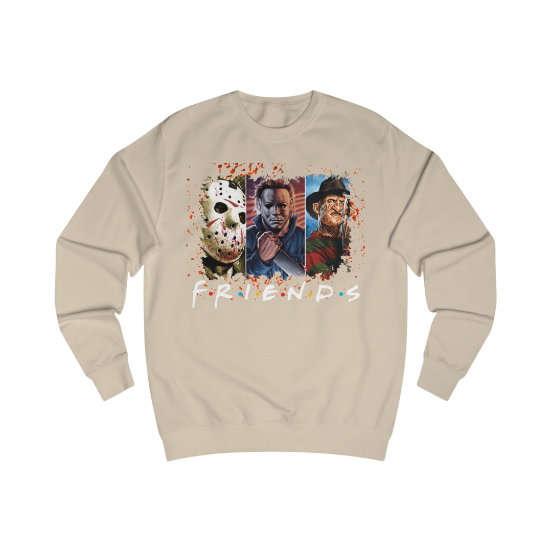 Every nightmare in one place. This midweight 8.3 oz crewneck blends 80/20 ring spun cotton/polyester for lasting comfort and durability. Featuring a bold collage of horror’s most iconic killers—from Freddy and Jason and beyond—this sweatshirt is built for true fans of the genre. Rib cuffs, rib hem, and a tear-away label finish it off for a clean, comfortable fit.