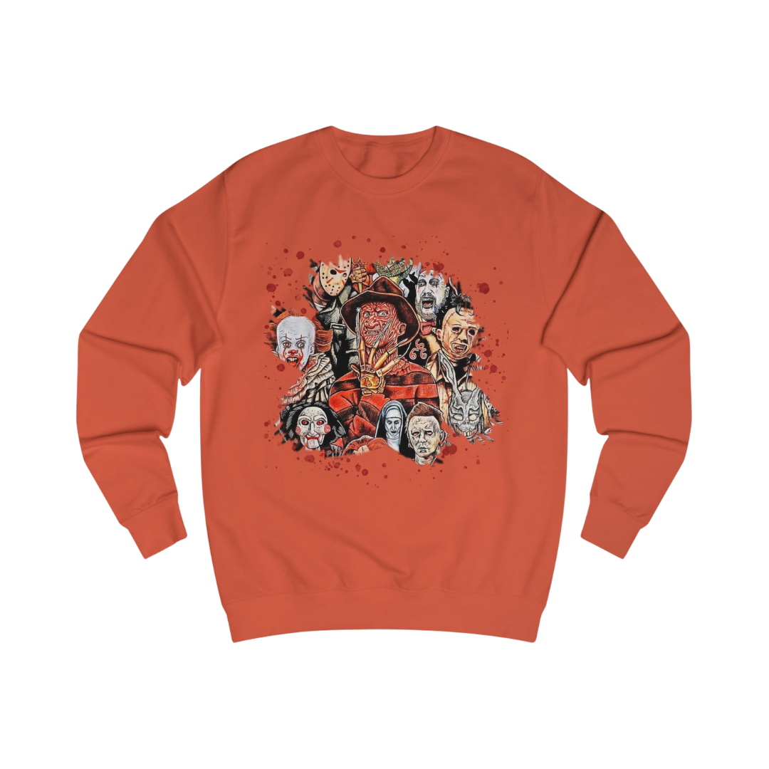 Every nightmare in one place. This midweight 8.3 oz crewneck blends 80/20 ringspun cotton/polyester for lasting comfort and durability. Featuring a bold collage of horror’s most iconic killers—from Freddy and Jason to Pennywise and beyond—this sweatshirt is built for true fans of the genre. Rib cuffs, rib hem, and a tear-away label finish it off for a clean, comfortable fit.